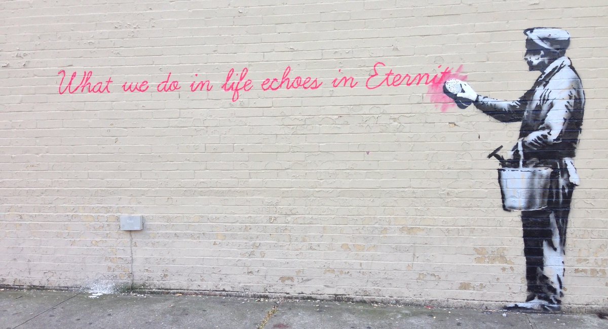 Doch die kunstwerke wurden entfernt wegen strenger anti graffiti regeln. Banksy ist ein britischer street art künstler dessen wahre identität trotz seiner großen bekanntheit bisher geheim geblieben ist. Ein künstler auch dessen gemälde devolved parliament anfang oktober zur rekordsumme von 9 44 millionen euro bei sotheby s versteigert wurde.